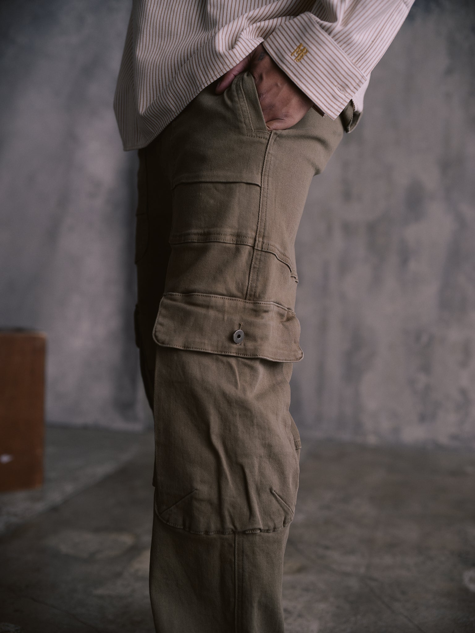 Crafted from mid-weight cotton, The Peace Corp pant is built with a tailored silhouette, reinforced knees, and functional side pockets. Tonal seams and a clean front keep the look elevated and understated.
